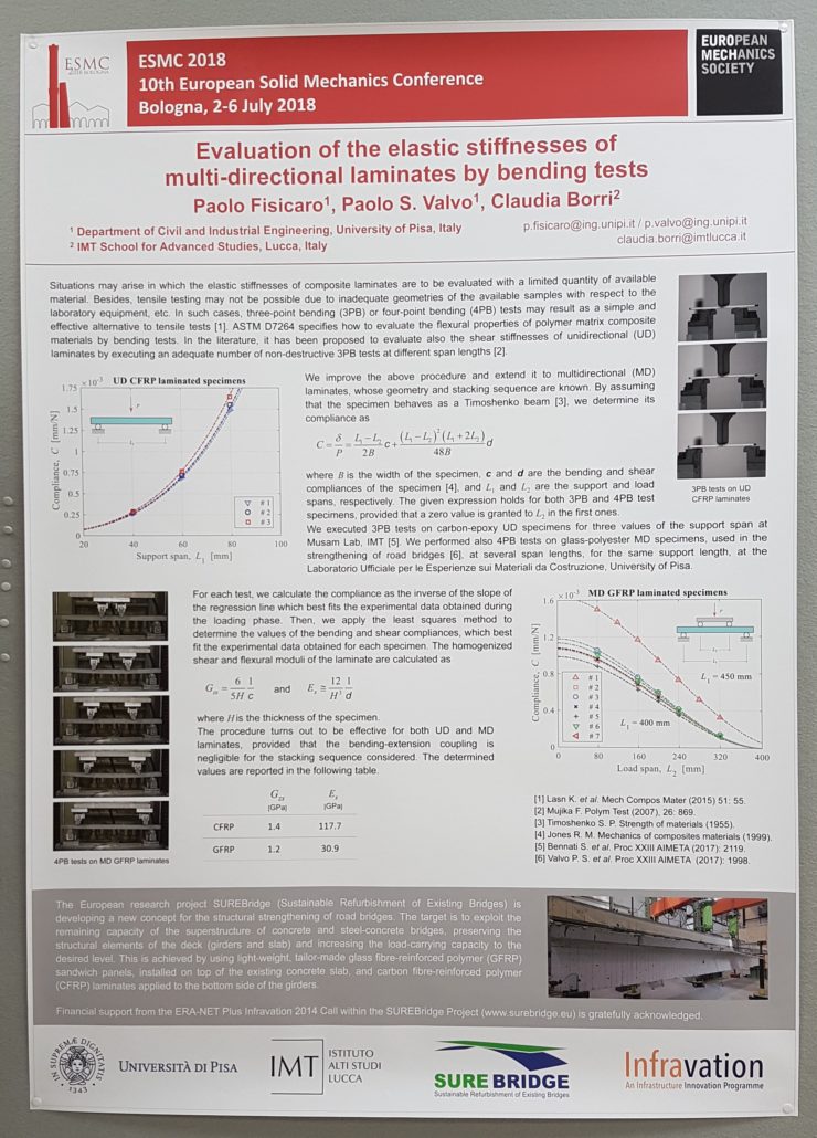 On July 5, 2018, a poster was presented at the 10th European Solid Mechanics Conference about the results of material tests carried out on GFRP samples at the University of Pisa: